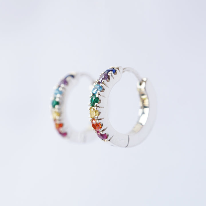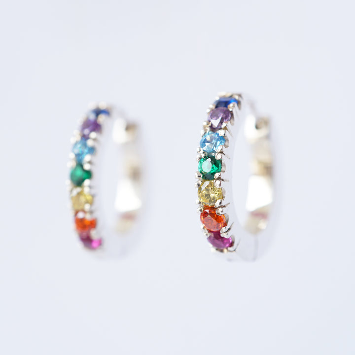 Inspirados en la magia de los colores que nos rodean, estos aretes en plata 925 y circonitas multicolor capturan la esencia de la amistad y la armonía.