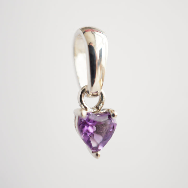 Este encantador dije, elaborado en plata 925, incluye una amatista, conocida por sus poderes de serenidad y protección. Su forma natural resalta la energía calmante de la piedra, evocando equilibrio y paz en quien la lleva.