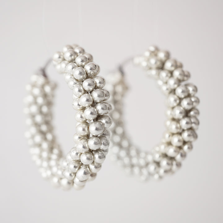 Estos aretes son una obra de arte tejida con miyukis drops bañados en plata, reflejando la dedicación y el detalle que definen la joyería artística.
